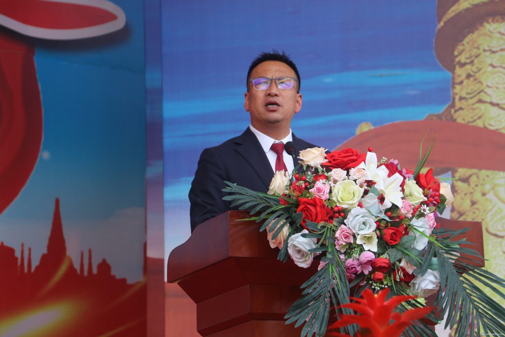 在雄壮的国歌声中,全体师生起立奏唱国歌,爱国情怀在心中激荡。校长李爱军致开幕词,他勉励同学们在体育艺术节中展现自我、挑战自我,培养团队精神和拼搏意识,并宣布定西市第一中学第八届体育艺术节开幕。