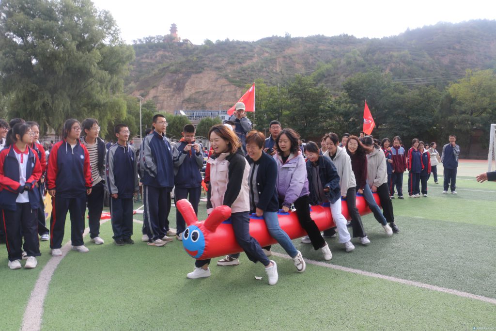 随后,备受期待的教职工趣味运动会正式开始。“趣味毛毛虫”、“障碍往返接力”、“蒸蒸日上”等项目轮番上演,老师们一改平日严肃形象,在赛场上尽情释放激情,展现了课堂之外的另一面风采,学生们的加油声、欢笑声此起彼伏。教职工教研组4*100接力赛将整个上午的活动推向又一个高潮,各教研组老师通力合作,奋力拼搏,用实际行动诠释了体育精神。