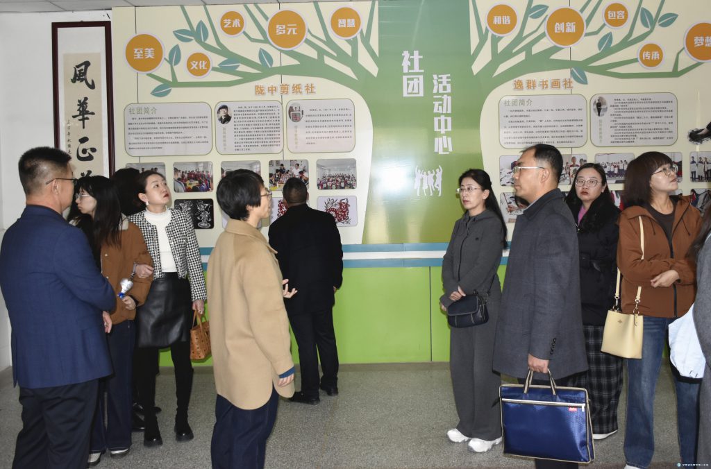 4日下午,考察团观摩社团成为另一道亮丽风景线。国防教育馆内,政教处副主任王宝平讲述着每一件展品的故事,这些故事引领着青年学子们向着更加辉煌的未来迈进。校团委书记李晓燕用心介绍每一个社团。剪纸社里,剪刀与纸张的交响乐悠扬响起,无论是栩栩如生的花鸟鱼虫,还是寓意深远的传统图案,都呈现出技艺和文化的传承与创新。书画社团则是笔墨间的诗意栖居,让人在喧嚣的世界中找到一片宁静之地,感受传统文化的深厚底蕴。数学建模的世界里,逻辑与创意碰撞出智慧的火花,使抽象的数字变得生动有趣。体育社团则是汗水与欢笑的海洋,学生们不仅锻炼了体魄,更学会了坚持与拼搏。心理咨询室负责人刘倩老师讲到,心理咨询室如同一盏温暖的灯塔,照亮了同学们心中的每一个角落,帮助他(她)们建立自信,学会面对挑战。……
