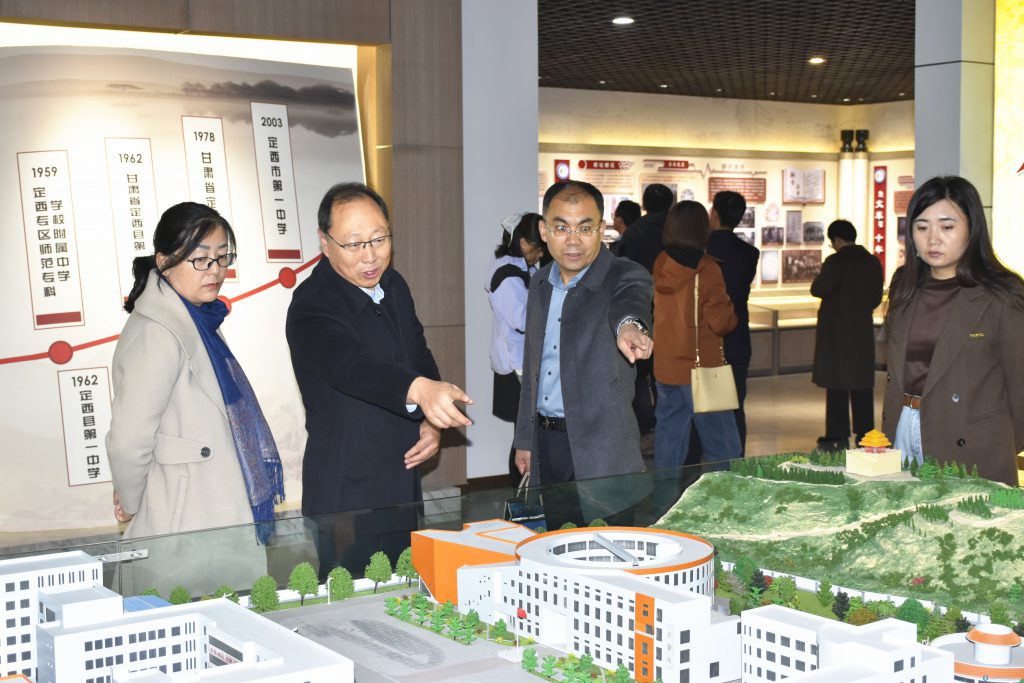 校史馆中,办公室副主任陈德文深情的向考察团介绍了我校八十多年风雨兼程的辉煌历程与办学特色,色泽渐变的照片如同时光的琥珀,凝固着全体定中人的精神血脉,诉说着教书育人不仅是技能的传授,更是精神的传承。考察团教师们感叹道:“这里每个角落都在诉说着成长的故事,这样的校园文化才能真正滋养心灵。”