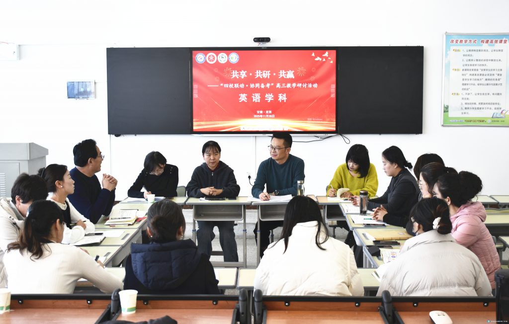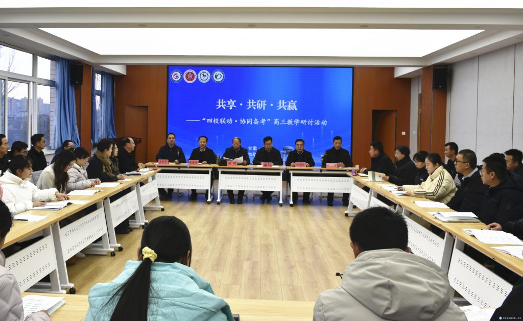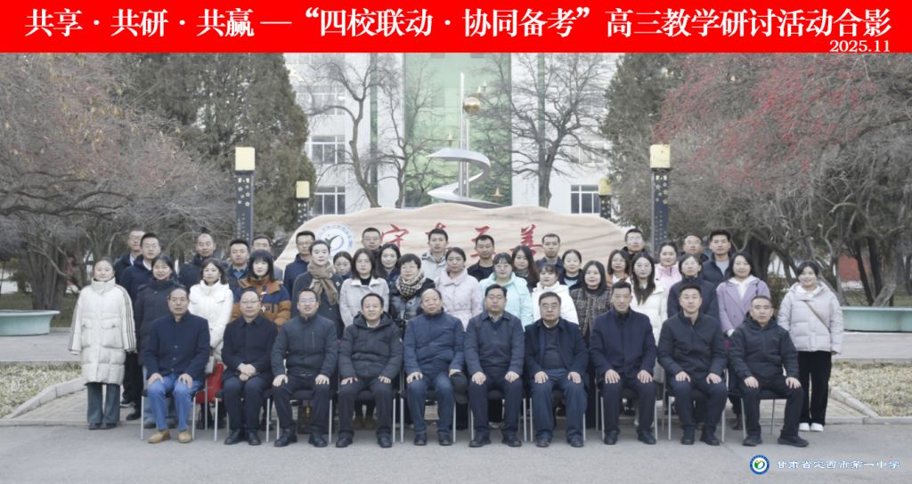 陇原大地寒意浓厚,教育沃土生生不息。为加强校际交流,共享优质备考资源,探索高效课堂教学模式,共同提升高三复习备考的针对性与有效性,11月28日,借助高三年级阶段性联考契机,我校联合天水市第一中学、平凉市第一中学、武威市第一中学,共同举办以“共享·共研·共赢”为主题的“四校联动·协同备考”高三教学研讨活动,包括临夏积石中学、漳县第一中学、安定区东方红中学在内的四市七校教育同仁同聚一堂,共研育人策略,共谋教育发展。