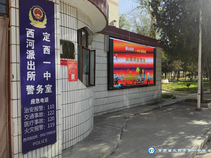 学校利用校门口电子屏滚动循环播放校园有关消防安全知识,持续向师生传递消防安全警示与注意事项。