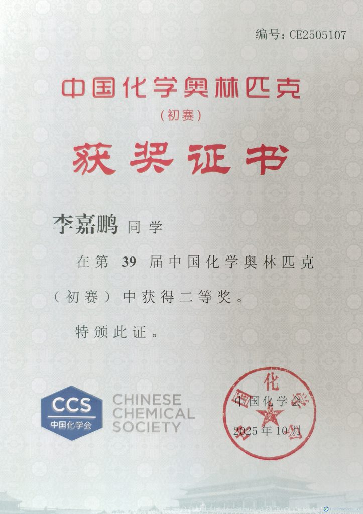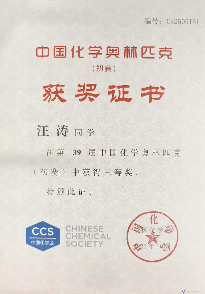 喜报——我校学子在第39届中国化学奥林匹克竞赛甘肃联赛中荣获佳绩 时间:2025-12-17 分类:三抓三促/ 教研成果 在2025年第39届中国化学奥林匹克竞赛甘肃联赛中,我校1人获省级一等奖,1人获省级二等奖,5人获省级三等奖。 (撰稿:董立顺 审核:王景龙 田永强 监审:水晶) 分享: 上一个: 喜报——我校学子在2025年第42届全国中学生物理竞赛甘肃联赛中荣获佳绩 相关文章 喜报——我校学子在2025年第42届全国中学生物理竞赛甘肃联赛中荣获佳绩 定西一中“对话名校 筑梦未来”系列活动|哈尔滨工业大学专场 【区域联动 众行致远】智慧共享 智研共赢 【研经悟理 授业传道】广学集智逐光行,求变则通耘梦田 【“三抓三促”行动进行时】定西一中校报2025年第八期 【“三抓三促”行动进行时】师徒同心展匠心 青蓝携手绽芳华 【“三抓三促”行动进行时】帮扶搭台连校际 互鉴同行共育人 【“三抓三促”行动进行时】区域联动促深度交流 携手并进谋共同发展