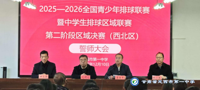 2025年12月10日下午,定西市第一中学于知行楼阅览室隆重举行2025-2026全国青少年排球联赛暨中学生排球区域联赛第二阶段区域决赛(西北区)誓师大会。学校领导、男女排球教练员、特长班班主任、全体特长班学生齐聚一堂,旨在为即将奔赴赛场的排球健儿们加油助威,凝聚团队力量,激发昂扬斗志。