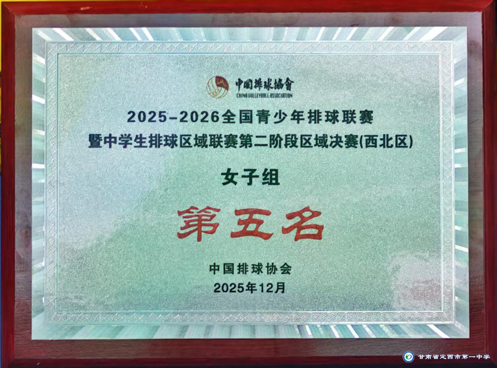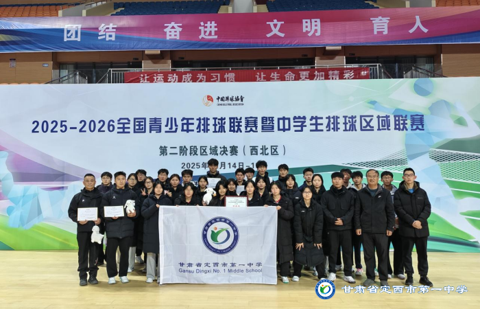 誓师大会结束后,怀揣着梦想与期待的少年们迅速转换角色,踏上了前往西北区排球决赛赛场的征程。12月19日,2025—2026全国青少年排球联赛暨中学生排球区域联赛第二阶段西北区决赛,在宁夏青铜峡市黄河奥体中心落下帷幕。在为期6天的比赛中,来自甘肃、陕西、新疆、内蒙古、宁夏五个省区的30支代表队同场竞技。我校男女排球队代表学校出征,在赛场上不畏强手,奋勇拼搏,最终取得女排第五名、男排第十三名的好成绩。男队教练王永东老师,男队队员张文泽、杜荣,女队队员张弘、南琳分别荣获“体育道德风尚奖”。