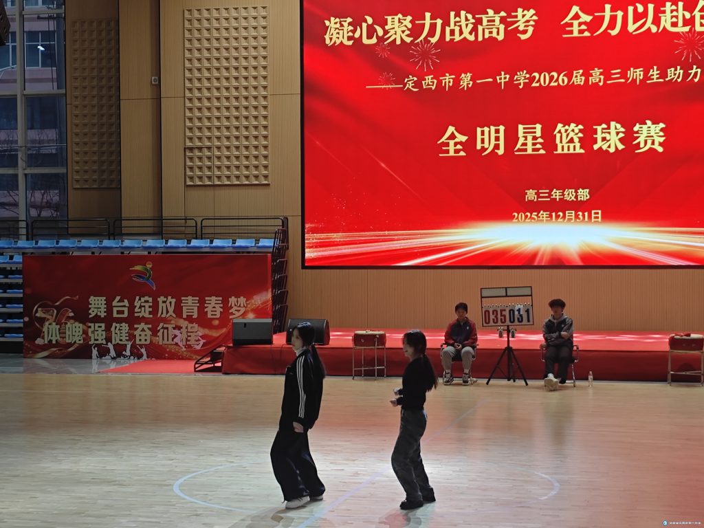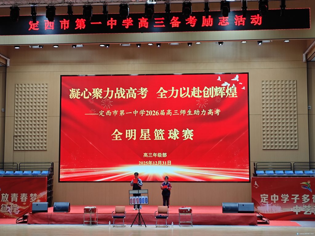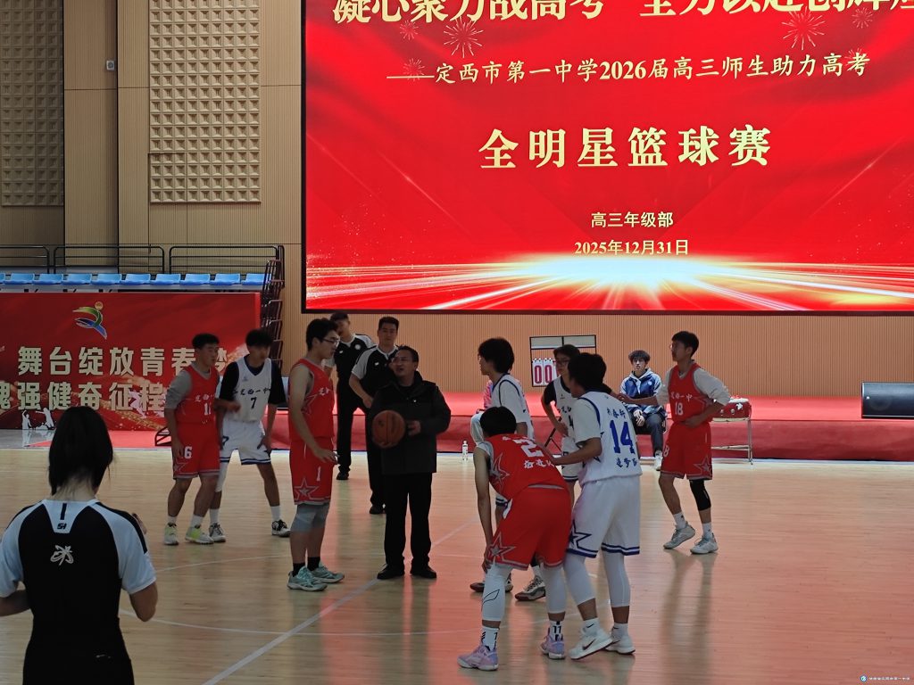 12月31日下午,定西市第一中学体育馆内旌旗招展、掌声如潮,2026届高三全明星篮球赛在此激情开赛。本次活动以“凝心聚力战高考 全力以赴创辉煌”为主题,旨在缓解高三学子备考压力,强化团队协作精神,营造奋勇拼搏的备考氛围,让全体师生在运动中放松身心,以更饱满的热情迎接新年与高考的双重挑战。