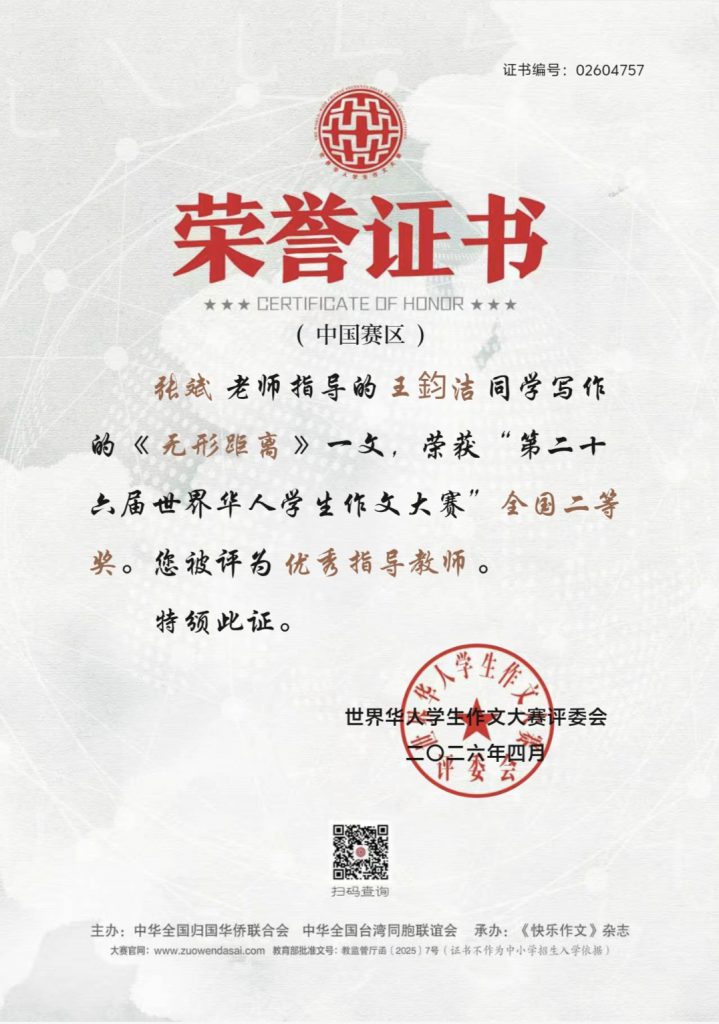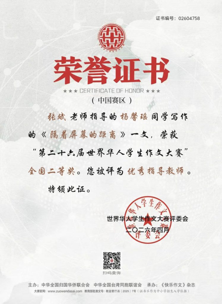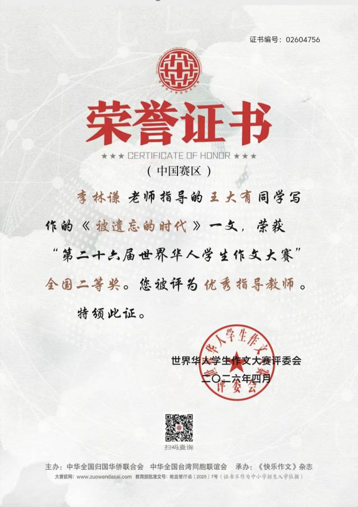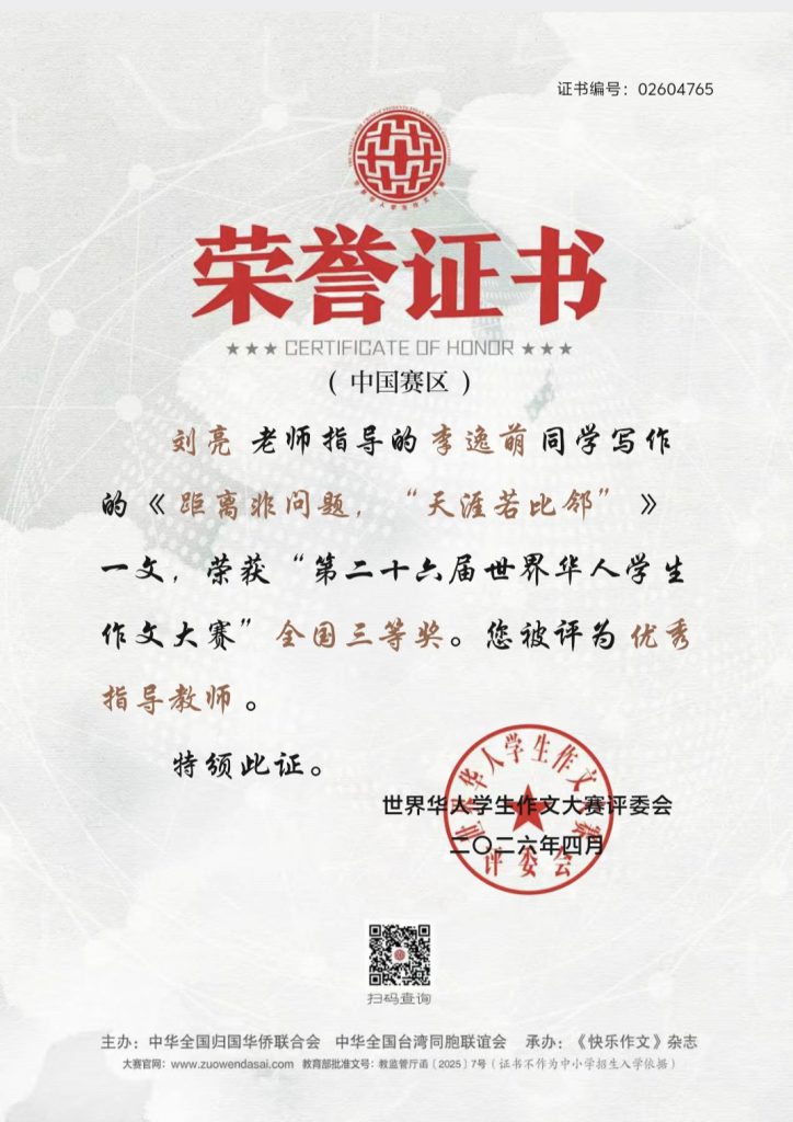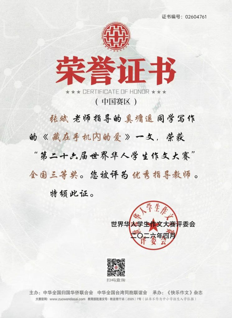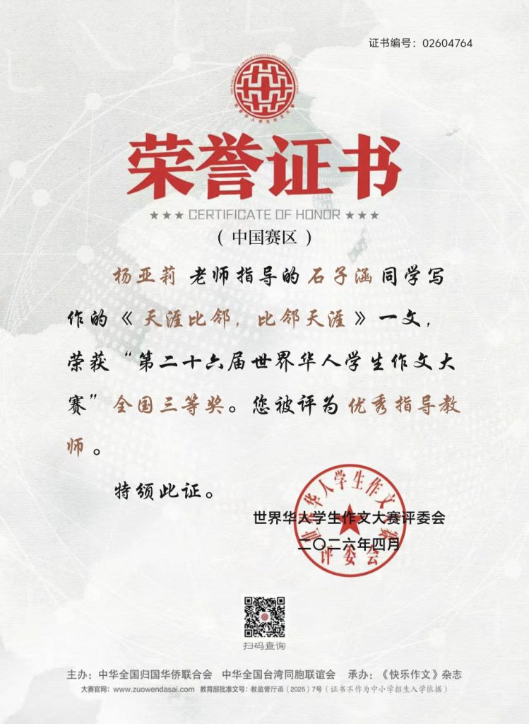 喜报——我校学子在第二十六届世界华人学生作文大赛中荣获佳绩