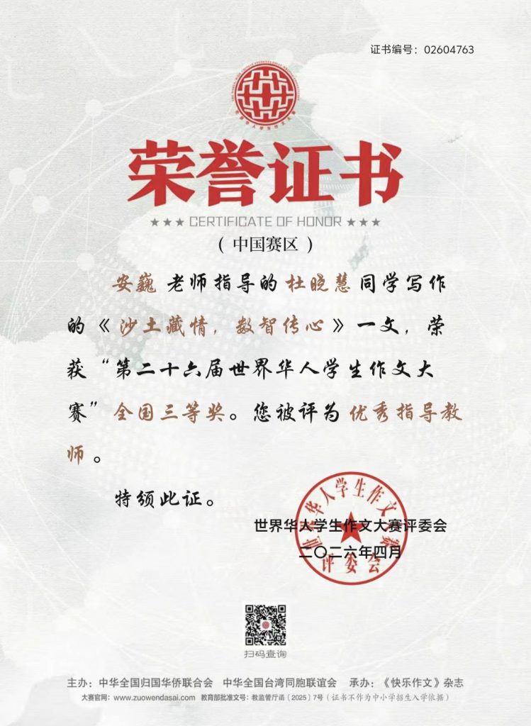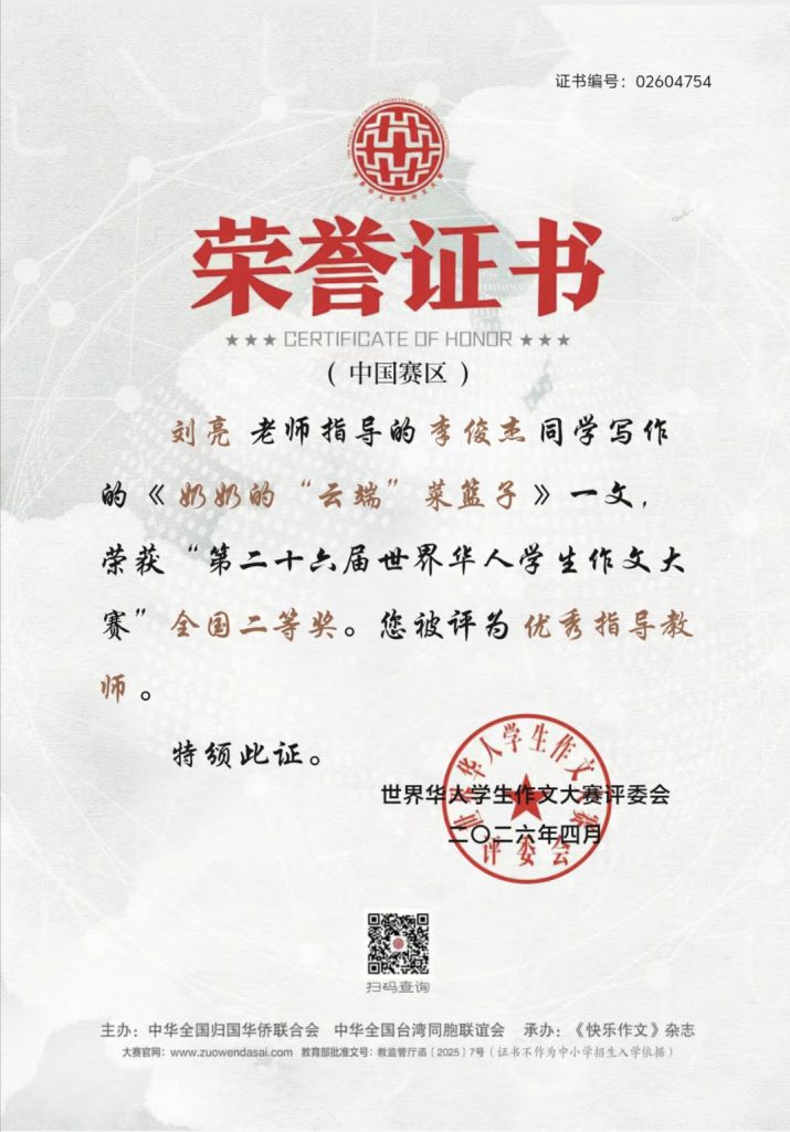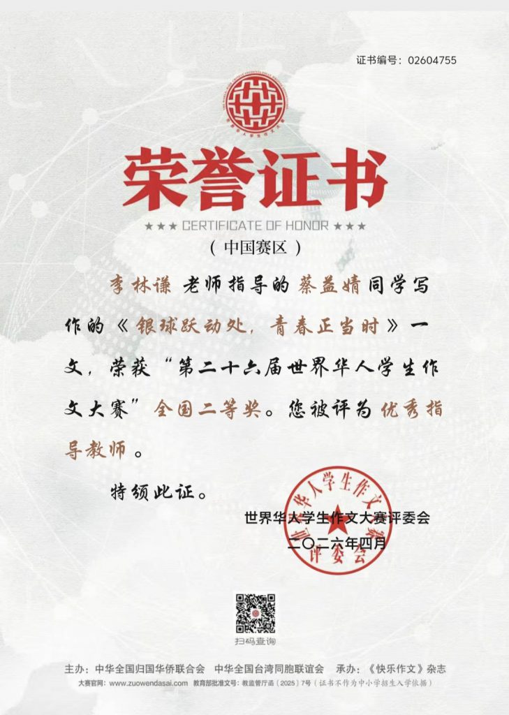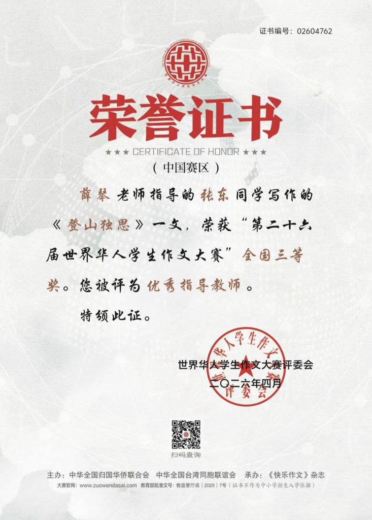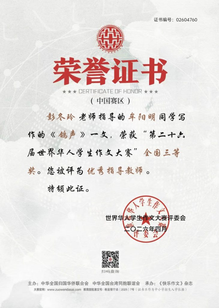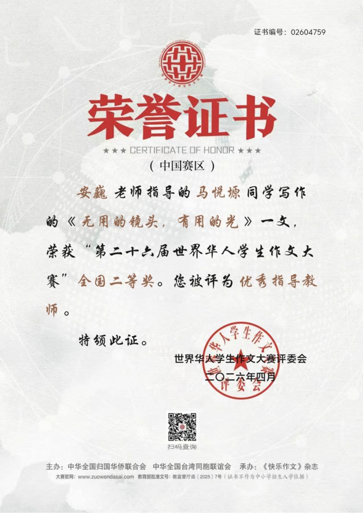喜报——我校学子在第二十六届世界华人学生作文大赛中荣获佳绩