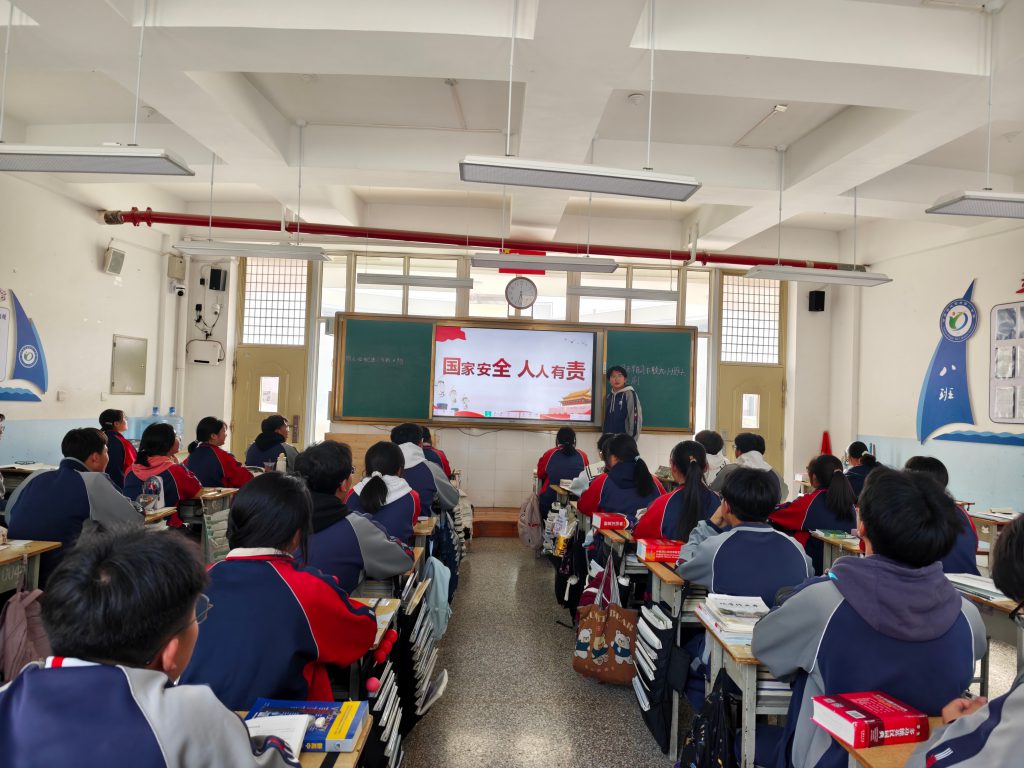 学校充分利用线上线下多种载体,精心编织了一张立体宣传教育网络,让国家安全理念入脑入心。校门口电子屏滚动播放国家安全教育日主题标语、电视墙滚动播放精心制作的“国家安全,人人有责”微视频,生动直观;校园广播站开设“国安小课堂”专栏,课间传递安全强音;各班召开国家安全教育日主题班会,班主任结合典型案例,讲解国家安全教育,引导学生主动学习国家安全知识、掌握防护技能;各班还利用主题板报,描绘心中的安全长城;更有创新之举——依托“定西法治宣传”微信公众号,开展“知识竞赛”答题活动。15日上午,全校师生观看全国大中小学生同上一堂总体国家安全观“思政大课”电视直播……从线下到线上,从视觉到听觉,国家安全的知识与理念,如春风化雨,将国家安全理念融入校园文化,浸润师生日常。